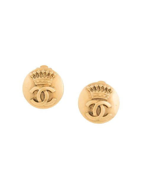 Chanel Vintage Crown Cc Round Earrings Gold Modesens