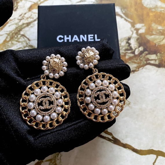 Elegant Coco Chanel Chunky Cc Crystals Pearls Earrings Etsy