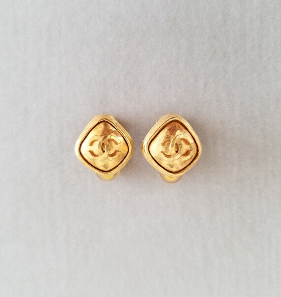Vintage Chanel Coco Mark Earrings Cc Logo Clip On Earrings Etsy